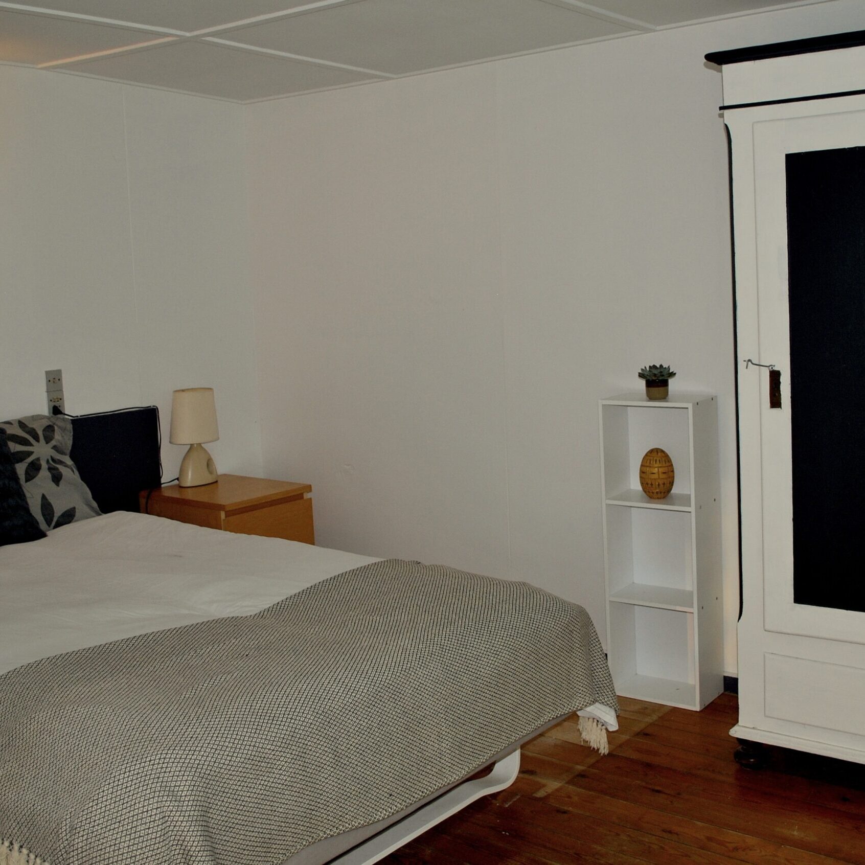 Soveværelset indeholder en dobbeltseng med ny madras, samt opbevaringsplads til bagage.